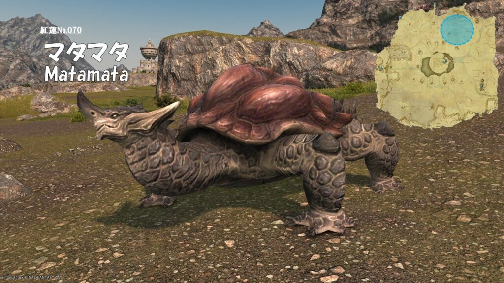 FF14 紅蓮No.070 マタマタ(Matamata) さにすと 2026年4月20日 No.070 マタマタ(Matamata) 分類:衆生門 水棲綱 マタマタ属 生息地:アジムステップ技: ドロップ品: ゲーム内情報: 考察: モンスター図鑑 蒼天のイシュガルド