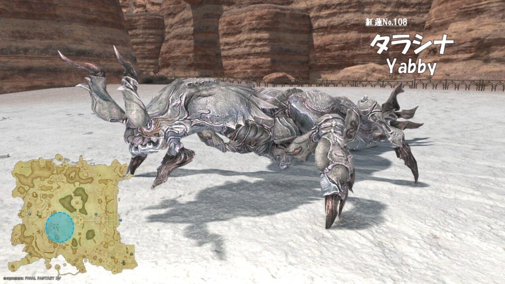 FF14 紅蓮No.108 タラシナ(Yabby) さにすと 2026年4月21日 No.108 タラシナ(Yabby) 分類:衆生門 百蟲綱 タラシナ属 生息地:ギラバニア湖畔地帯技: ドロップ品: ゲーム内情報: 考察: モンスター図鑑 紅蓮のリベレーター