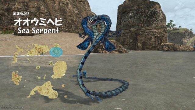 FF14 紅蓮No.038 オオウミヘビ(Sea Serpent) 2026年4月20日 さにすと No.038 オオウミヘビ(Sea Serpent) 分類:衆生門 水棲綱 コブラ属 生息地:紅玉海技: ドロッ …