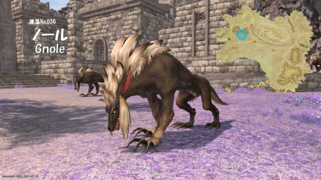 No.037 ノール(Gnole) 分類:衆生門 百獣綱 ノール属 生息地:レイクランド技:フィーバードピッチ WSアシュラクロー 前方直線範囲+ノックバック …