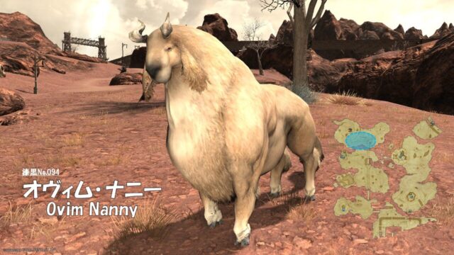 FF14 漆黒No.094 オヴィム・ナニー(Ovim Nanny) 2026年4月21日 さにすと No.094 オヴィム・ナニー(Ovim Nanny) 分類:衆生門 百獣綱 アルドゴート属 生息地:アム・アレーン技 …