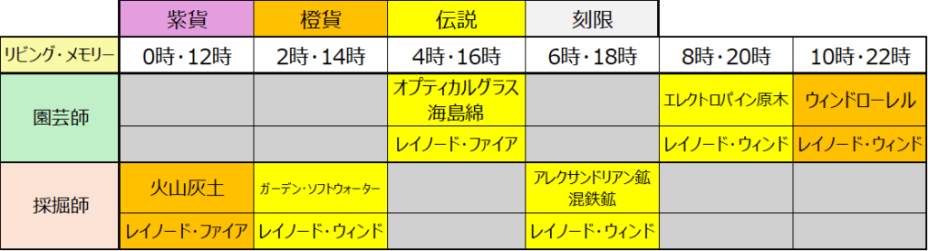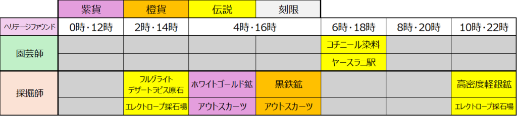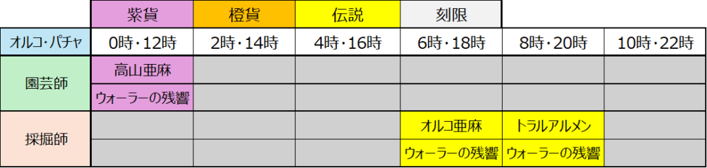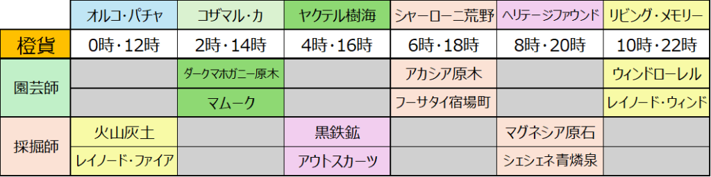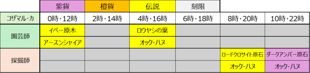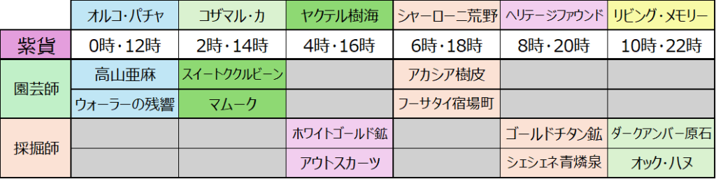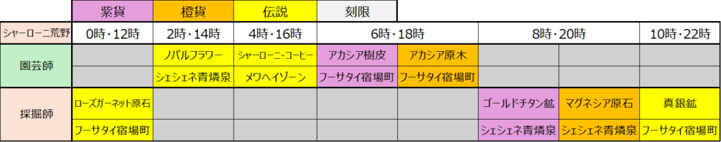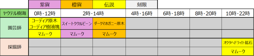 なんの嫌がらせかは知らないですが、4時の採掘、10時の園芸に何も設定されてないのはなんなんですかねw