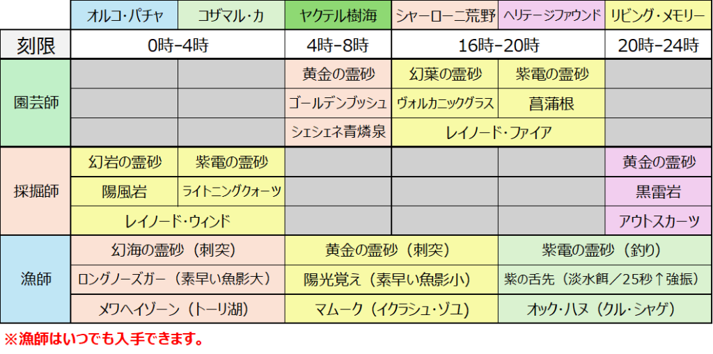この記事は「目的別・地域別ギャザラーのカンスト後の行動まとめ」です。