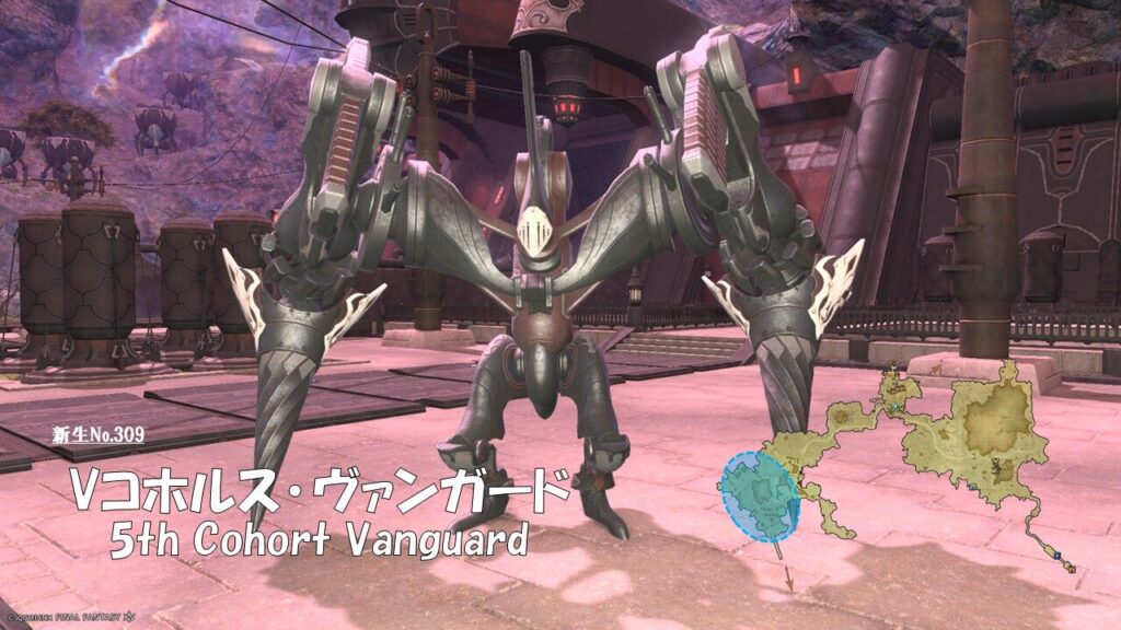 FF14 新生No.309 Vコホルス・ヴァンガード(5th Cohort Vanguard) さにすと 2026年3月21日 No.309 Vコホルス・ヴァンガード(5th Cohort Vanguard) 分類:無情門 機関綱 ヴァンガード属 生息地:モードゥナ技: ドロップ品: ゲーム内情報: 考察: モンスター図鑑