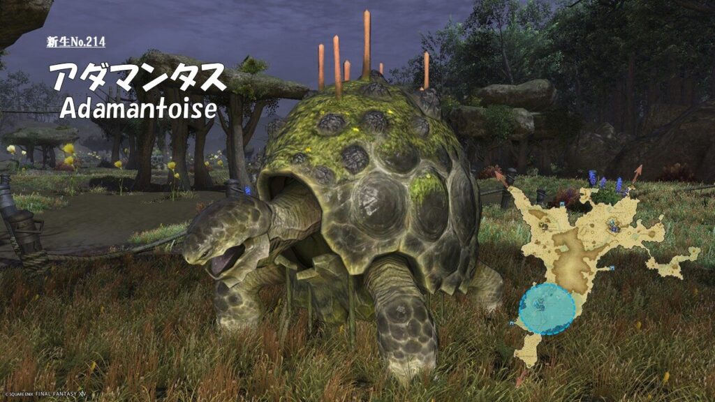 FF14 新生No.214 アダマンタス(Adamantoise) さにすと 2026年3月16日 No.214 アダマンタス(Adamantoise) 分類:衆生門 水棲綱 アダマンタス属 生息地:南部森林技: ドロップ品: ゲーム内情報: 考察: モンスター図鑑