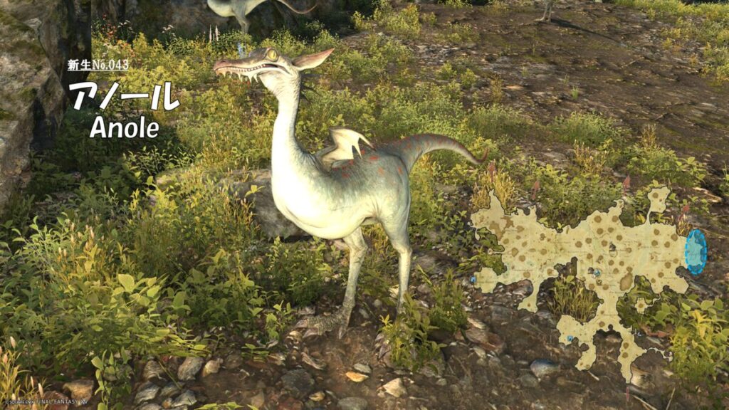 FF14 新生No.043 アノール(Anole) さにすと 2026年1月27日 No.043 アノール(Anole) 分類:衆生門 甲鱗綱 ラプトル属 生息地:中央森林技:フロストブレス 前方扇範囲 ドロップ品: ゲーム内情報: 考察: モンスター図鑑