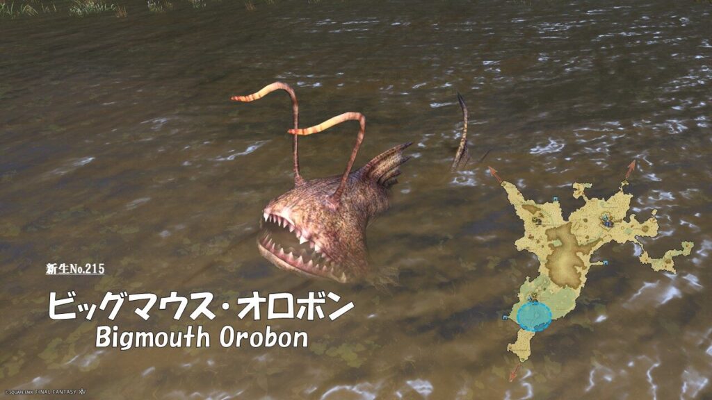 FF14 新生No.215 ビックマウス・オロボン(Bigmouth Orobon) さにすと 2026年3月16日 No.215 ビックマウス・オロボン(Bigmouth Orobon) 分類:衆生門 水棲綱 オロボン属 生息地:南部森林技:かみつき WS ドロップ品: ゲーム内情報: 考察: モンスター図鑑