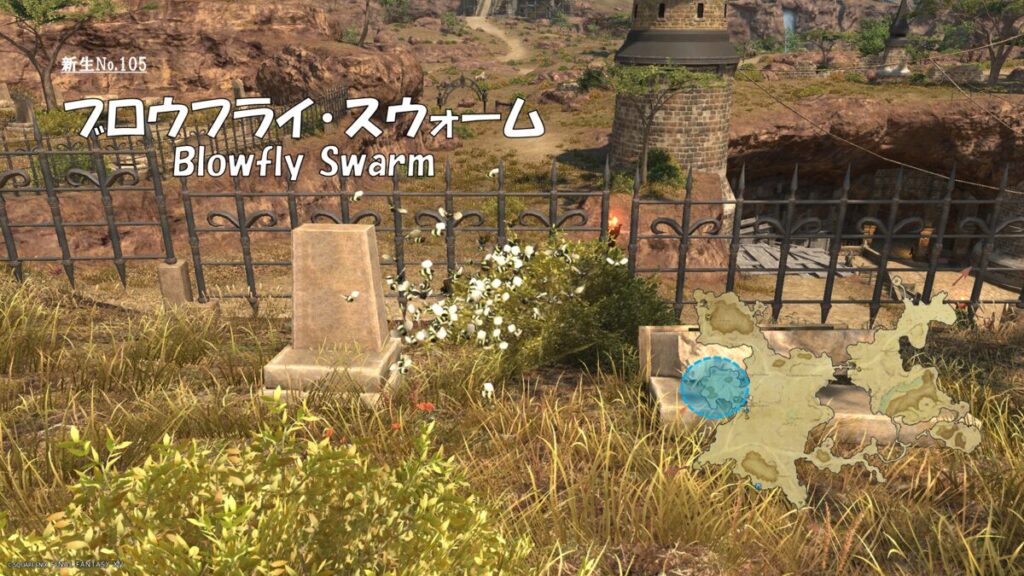 FF14 新生No.105 ブロウフライ・スウォーム(Blowfly Swarm) さにすと 2026年3月19日 No.105 ブロウフライ・スウォーム(Blowfly Swarm) 分類:衆生門 百蟲綱 スウォーム属 生息地:東ザナラーン技:AAのみ ドロップ品: ゲーム内情報: 考察: モンスター図鑑