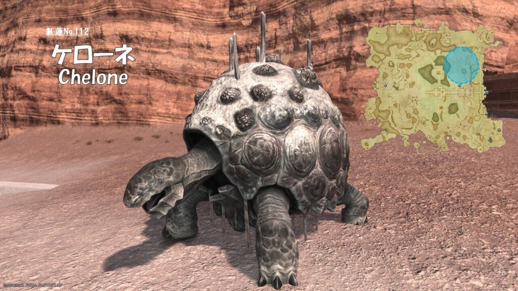 FF14 紅蓮No.112 ケローネ(Chelone) さにすと 2026年4月21日 No.112 ケローネ(Chelone) 分類:衆生門 水棲綱 アダマンタス属 生息地:ギラバニア湖畔地帯技: ドロップ品: ゲーム内情報: 考察: モンスター図鑑 紅蓮のリベレーター