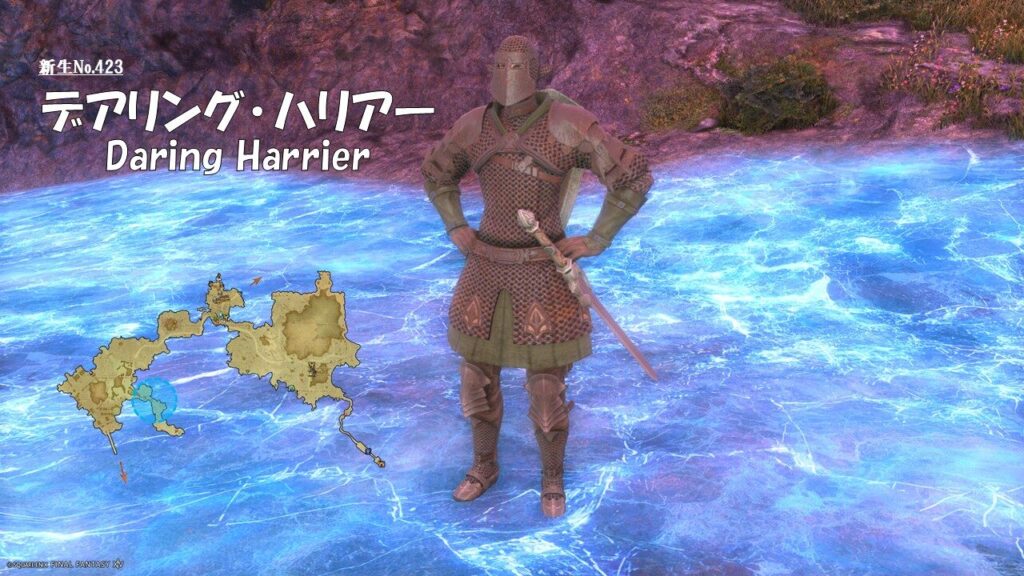 FF14 新生No.423 デアリング・ハリアー(Daring Harrier) さにすと 2026年3月21日 No.423 デアリング・ハリアー(Daring Harrier) 分類:人間 生息地:モードゥナ技:ファストブレード WSシールドバッシュ WS+スタン ドロップ品: ゲーム内情報: 考察: モンスター図鑑