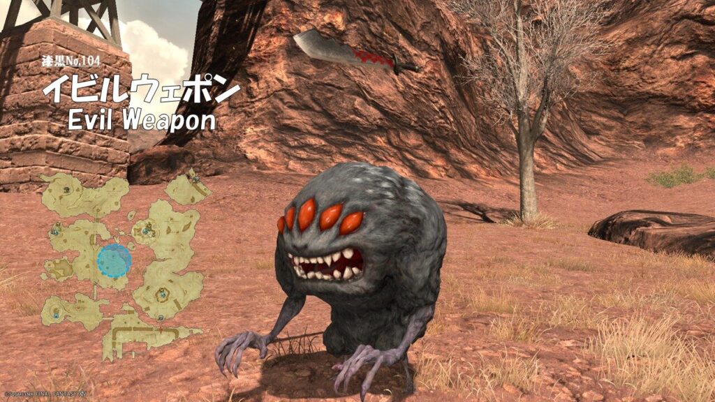 FF14 漆黒No.104 イビルウェポン(Evil Weapon) さにすと 2026年4月21日 No.104 イビルウェポン(Evil Weapon) 分類:無情門 呪具綱 イビルウェポン属 生息地:アム・アレーン技: ドロップ品: ゲーム内情報: 考察: モンスター図鑑 漆黒のヴィランズ