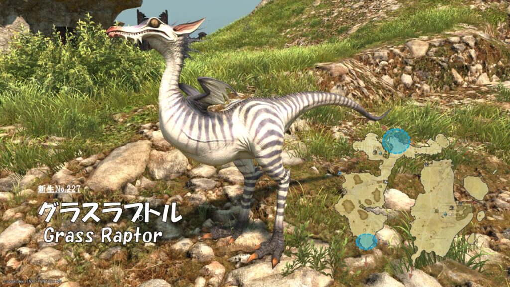 FF14 新生No.227 グラスラプトル(Grass Raptor) さにすと 2026年1月26日 No.227 グラスラプトル(Grass Raptor) 分類:衆生門 甲鱗綱 ラプトル属 生息地:高地ラノシア技:ファウルブレス 前方扇範囲 ドロップ品: ゲーム内情報: 考察: モンスター図鑑