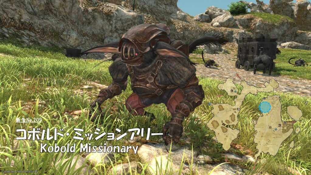 FF14 新生No.209 コボルド・ミッションアリー(Kobold Missionary) さにすと 2026年1月26日 No.209 コボルド・ミッションアリー(Kobold Missionary) 分類:衆生門 六識綱 コボルド属 生息地:東ラノシア技:ストーン 魔法収束手榴弾 対象中心円範囲 ドロップ品: ゲーム内情報: 考察: モンスター図鑑