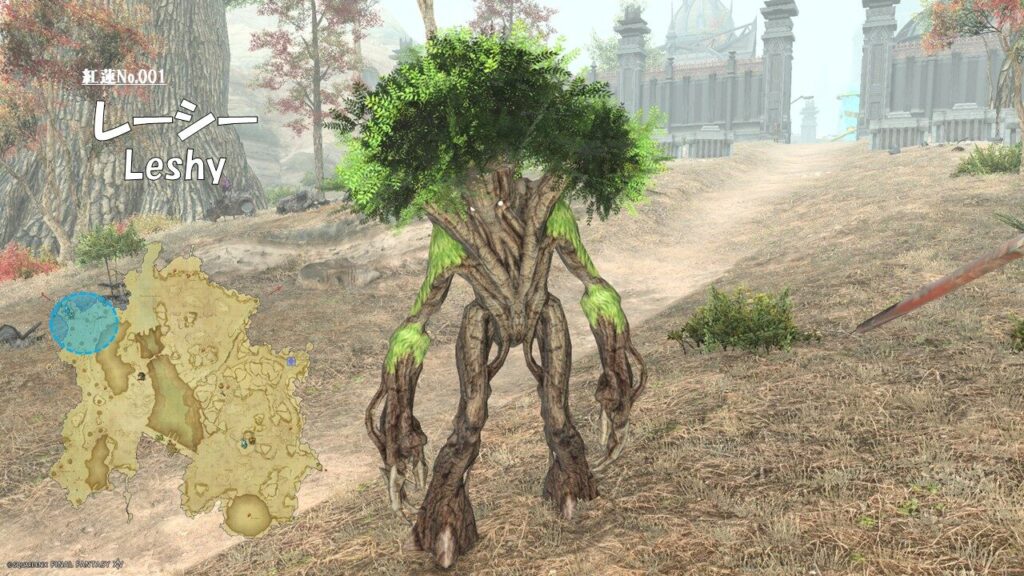 FF14 紅蓮No.001 レーシー(Leshy) さにすと 2026年4月19日 / 2026年4月21日 No.001 レーシー(Leshy) 分類:衆生門 草木綱 ウッドマン属 生息地:ギラバニア辺境地帯技:クリープアイヴィ 前方扇範囲+ヘヴィ ドロップ品: ゲーム内情報: 考察: モンスター図鑑 紅蓮のリベレーター