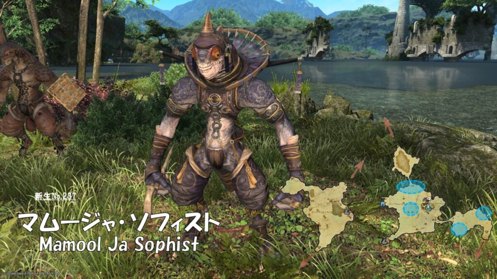 FF14 新生No.237 マムージャ・ソフィスト(Mamool Ja Sophist) さにすと 2026年1月26日 No.237 マムージャ・ソフィスト(Mamool Ja Sophist) 分類:衆生門 六識綱 マムージャ属 生息地:高地ラノシア技:ファイア 魔法スピニングキック 敵中心円範囲グランドバースト 対象中心円範囲 ドロップ品: ゲーム内情報: 考察: モンスター図鑑