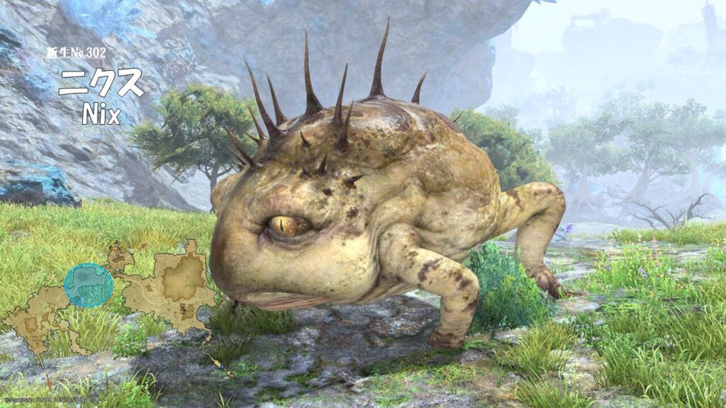 FF14 新生No.302 ニクス(Nix) さにすと 2026年3月21日 No.302 ニクス(Nix) 分類:衆生門 水棲綱 トード属 生息地:モードゥナ技:ラップ WSレイバードリープ 敵中心円範囲スティッキータン WS+引き寄せ ドロップ品: ギガントードの粗皮 ゲーム内情報: 考察: モンスター図鑑