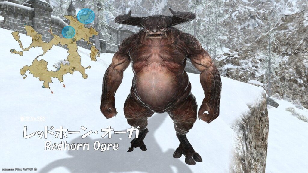 FF14 新生No.262 レッドホーン・オーガ(Redhorn Ogre) さにすと 2026年3月20日 No.262 レッドホーン・オーガ(Redhorn Ogre) 分類:超常門 妖異綱 オーガ属 生息地:クルザス中央高地技: ドロップ品: オーガの角 ゲーム内情報: 考察: モンスター図鑑
