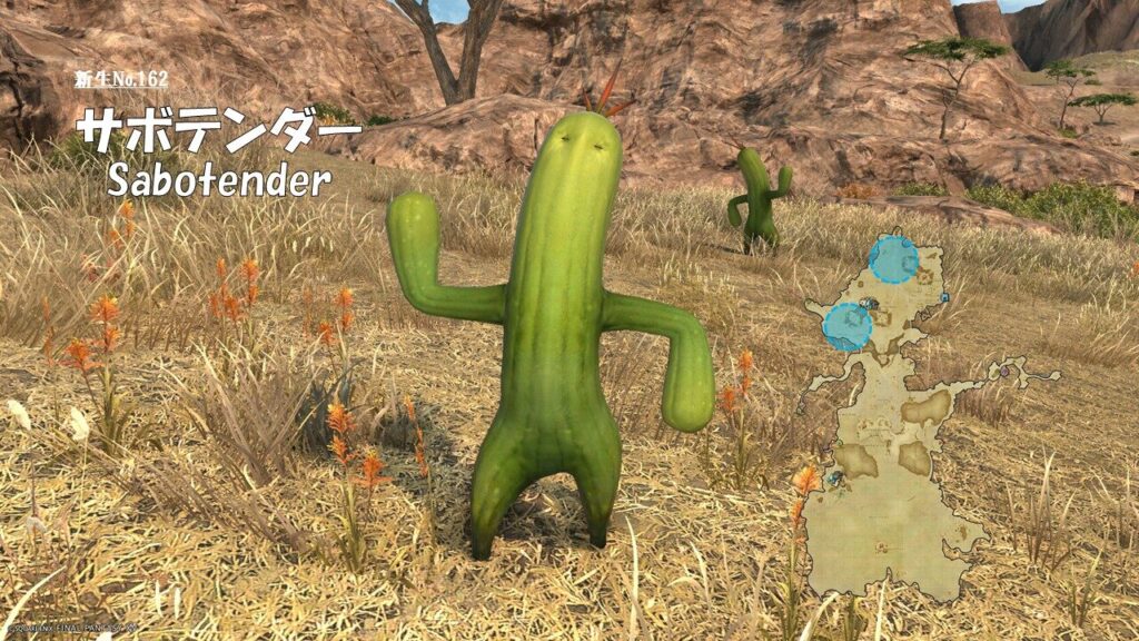 FF14 新生No.162 サボテンダー(Sabotender) さにすと 2026年3月20日 No.162 サボテンダー(Sabotender) 分類:衆生門 草木綱 サボテンダー属 生息地:南ザナラーン技: ドロップ品: ゲーム内情報: 考察: モンスター図鑑