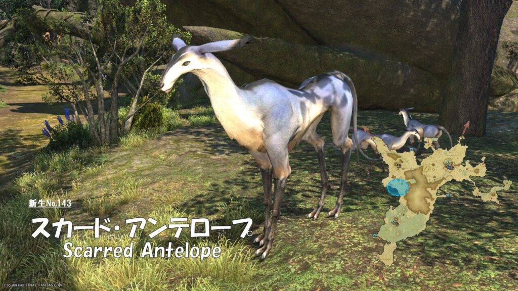 FF14 新生No.143 スカード・アンテロープ(Scarred Antelope) さにすと 2026年3月15日 No.143 スカード・アンテロープ(Scarred Antelope) 分類:衆生門 百獣綱 アンテロープ属 生息地:南部森林技: ドロップ品: ゲーム内情報: 考察: モンスター図鑑