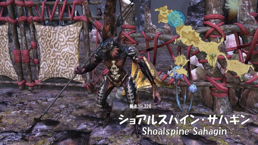 FF14 新生No.327 ショアルスケール・サハギン(Shoalscale Sahagin) さにすと 2026年1月22日 No.327 ショアルスケール・サハギン(Shoalscale Sahagin) 分類:衆生門 六識綱 サハギン属 生息地:西ラノシア技:エンウォータ 水属性付与トゥルースラスト WS ドロップ品: ゲーム内情報: 考察: モンスター図鑑