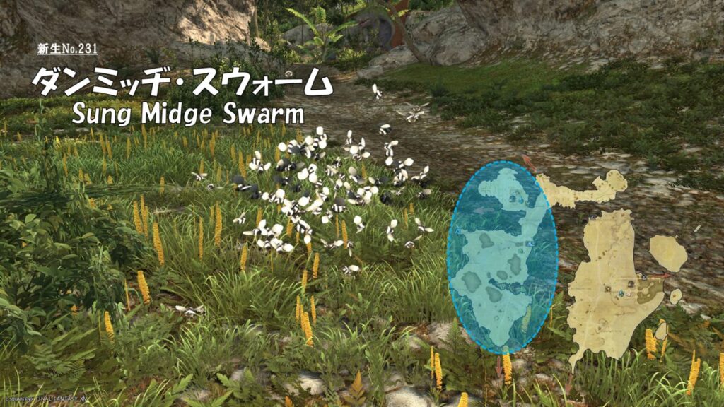 FF14 新生No.231 ダンミッヂ・スウォーム(Sung Midge Swarm) さにすと 2026年1月26日 No.231 ダンミッヂ・スウォーム(Sung Midge Swarm) 分類:衆生門 百蟲綱 スウォーム属 生息地:高地ラノシア技:AAのみ ドロップ品: ゲーム内情報: 考察: モンスター図鑑