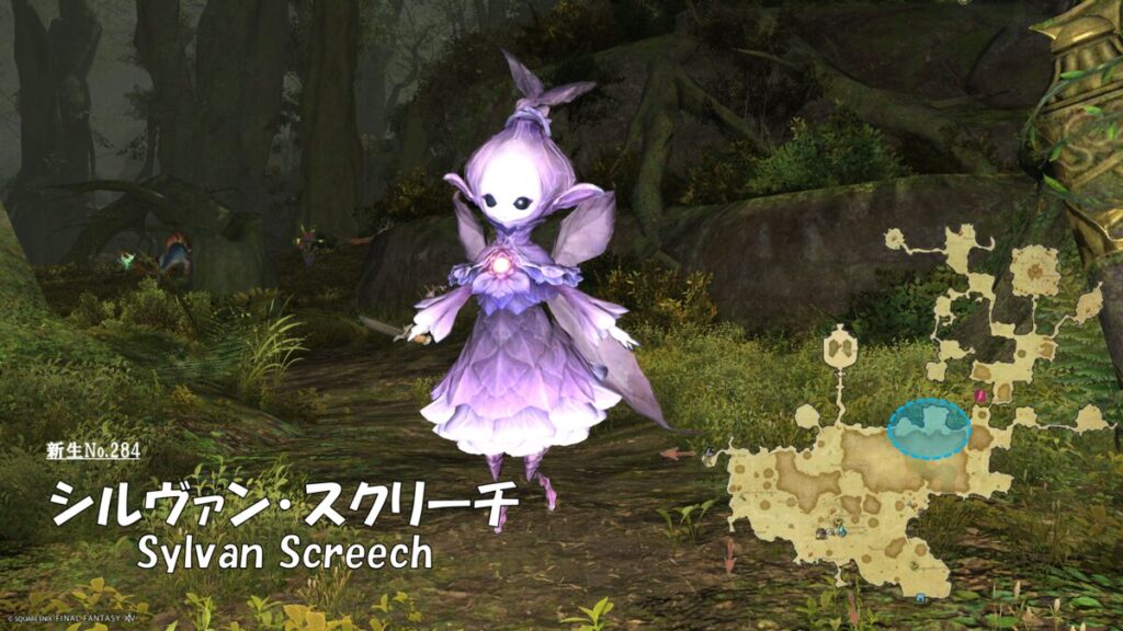FF14 新生No.284 シルヴァン・スクリーチ(Sylvan Screech) さにすと 2026年3月15日 No.284 シルヴァン・スクリーチ(Sylvan Screech) 分類:衆生門 六識綱 シルフ属 生息地:東部森林技: ドロップ品: ゲーム内情報: 考察: モンスター図鑑