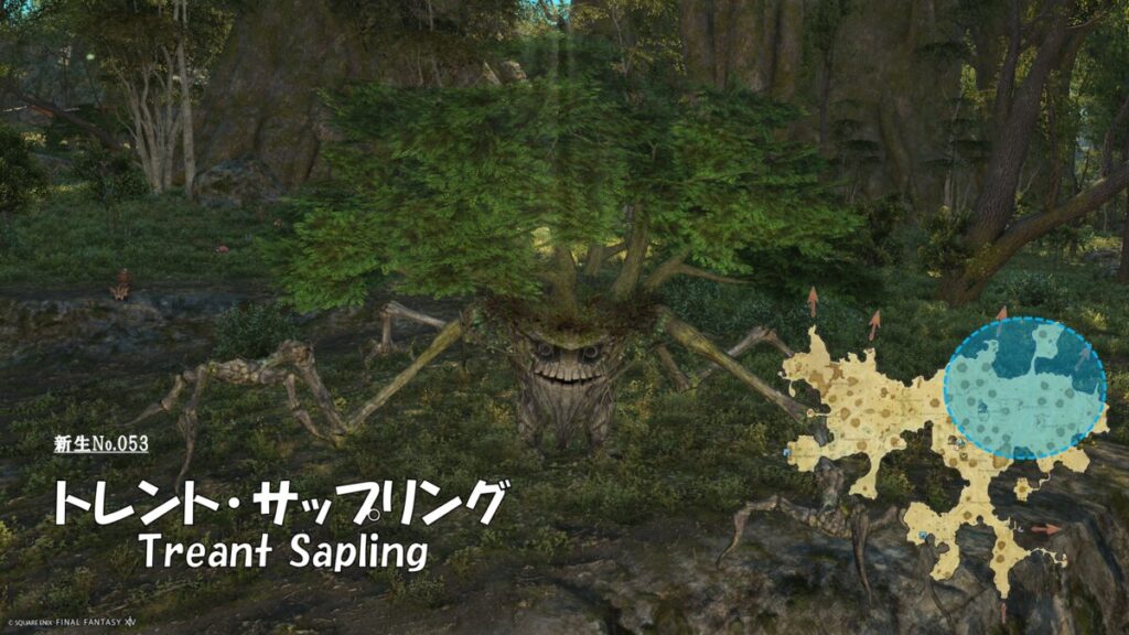 FF14 新生No.053 トレント・サップリング(Treant Sapling) さにすと 2026年1月27日 No.053 トレント・サップリング(Treant Sapling) 分類:衆生門 草木綱 トレント属 生息地:中央森林東部森林北部森林技:どんぐり爆弾 対象中心円範囲(不可視)+眠り ドロップ品: ゲーム内情報: 考察: モンスター図鑑