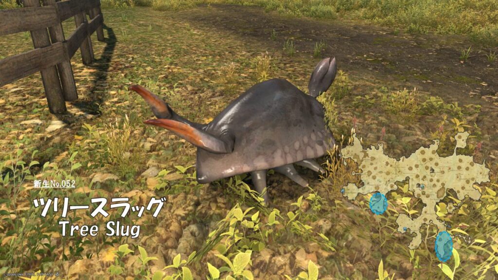 FF14 新生No.052 ツリースラッグ(Tree Slug) さにすと 2026年1月27日 No.052 ツリースラッグ(Tree Slug) 分類:衆生門 水棲綱 スラッグ属 生息地:中央森林東部森林技:液状散布 敵中心円範囲 ドロップ品: ゲーム内情報: 考察: モンスター図鑑