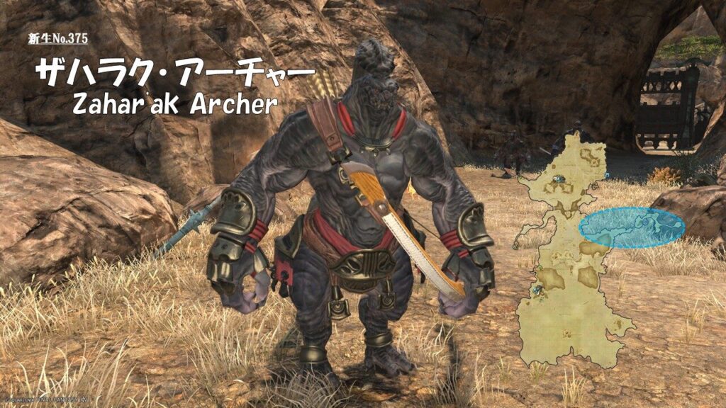 FF14 新生No.375 ザハラク・アーチャー(Zahar’ak Archer) さにすと 2026年3月20日 No.375 ザハラク・アーチャー(Zahar’ak Archer) 分類:衆生門 六識綱 アマルジャ属 生息地:南ザナラーン技: ドロップ品: ゲーム内情報: 考察: モンスター図鑑