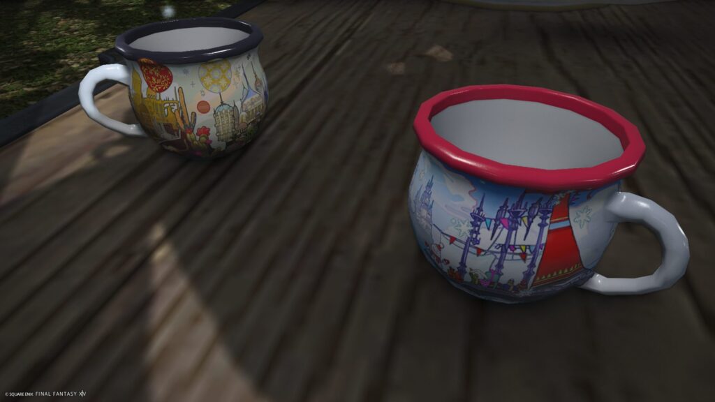 マグカップには各都市の風景や、ゆかりのあるもの・・・・・・海都は帆船、砂都はサボテンなどが、星芒祭らしい飾りと一緒に描かれているんだ。