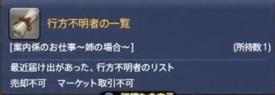 ようこそリムサ・ロミンサへ・・・・・・えっ、本部が作成した「行方不明者一覧」を持ってきてくれたの?